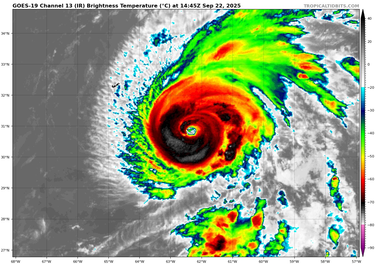 Wochenlang tat sich gar nichts auf dem Nordatlantik, dann entstand vor einigen Tagen der zunächst nur schwache Sturm GABRIELLE, der sich nun unter sehr günstigen Bedingungen explosionsartig zu einem starken Hurrikan mit mittleren Windgeschwindigkeiten bis etwa 200 km/h und noch wesentlich stärkeren Böen verstärkte und heute noch stärker werden kann. Der Hurrikan streift auf seinem Weg nach Norden Bermuda nur mit seinem äußersten Rand, könnte aber am Donnerstag unter Abschwächung Teile der Azoren treffen. Gleichzeitig tobt auf dem Nordwestpazifik der Supertaifun RAGASA.